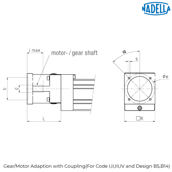 Gear / Motor Adaption with Coupling (Code IV, Design B14):